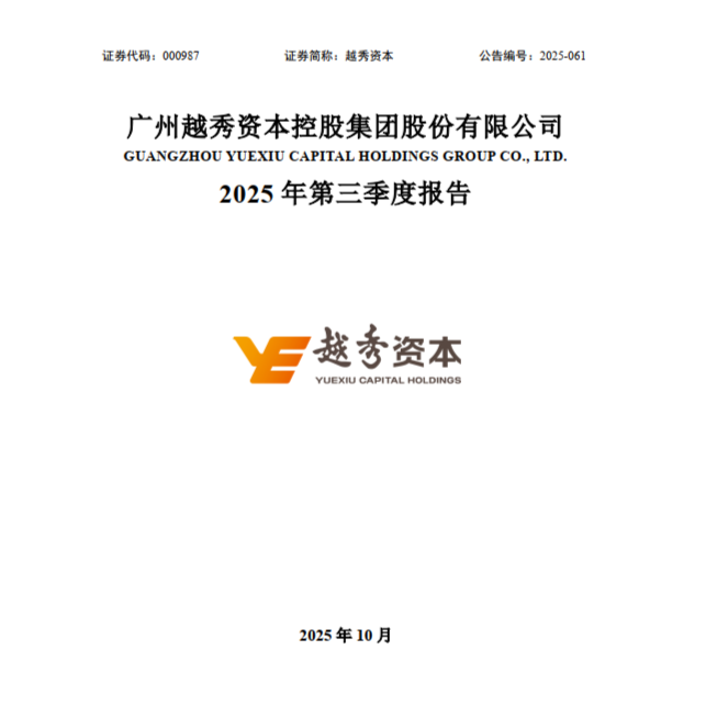 广州越秀资本控股集团股份有限公司 2025年三季度报告